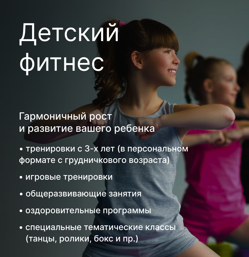 • профессиональное сопровождение в любой из зон (тренажерный зал, студии групповых программ, бассейн, детский фитнес)